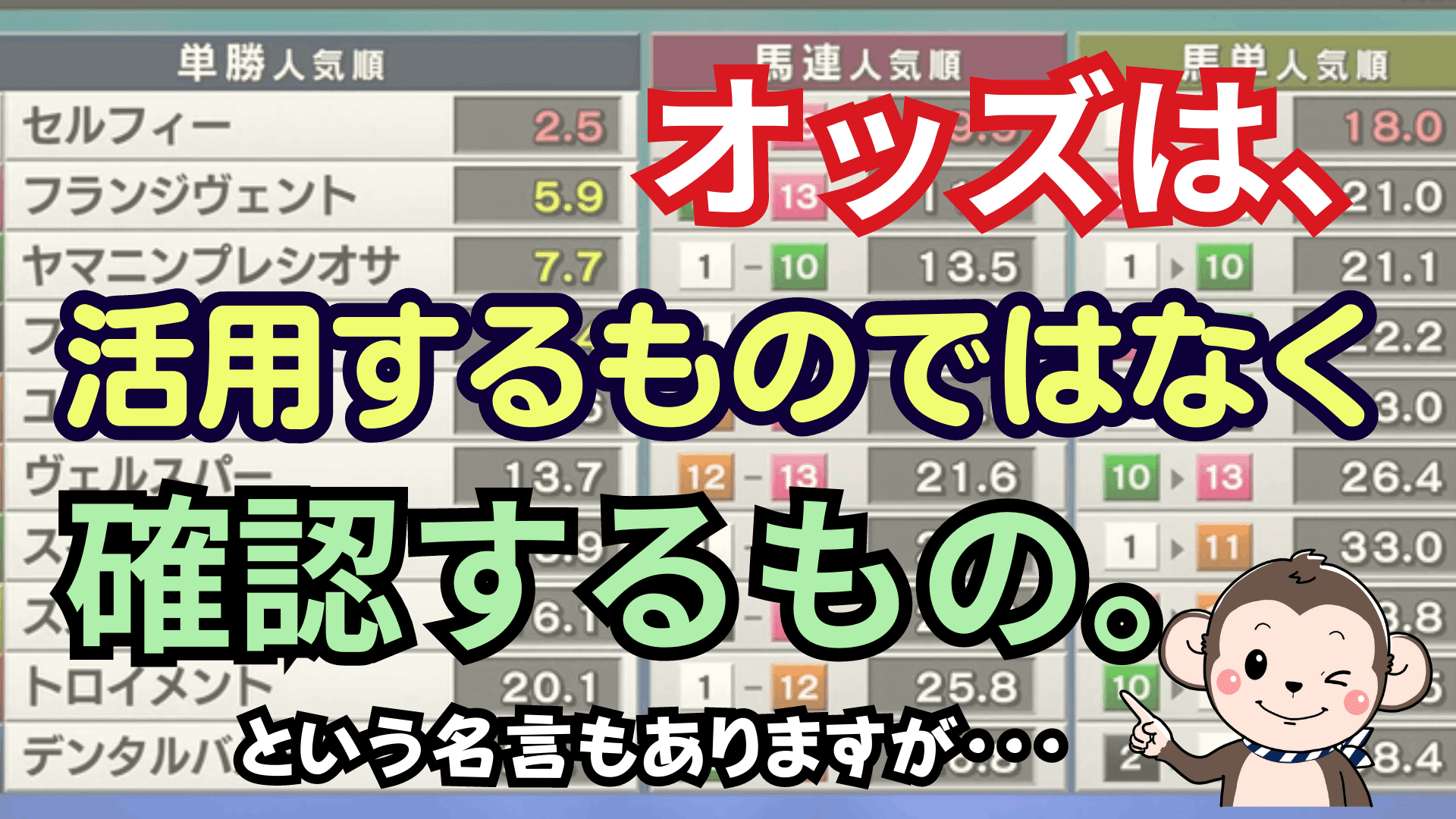 というわけで、オッズ活用術について書きましたが、オッズを何回もチェックしたからといって、馬券が当たるわけではありませんし、逆にオッズに振り回されて馬券を外す人も多いです。