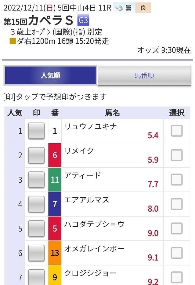 【例4】2022年12月11日 中山11R(カペラステークス)