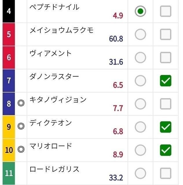 7.7倍表示に関しては、「オカルトか?」と言われそうですけど、デメキンの経験上、選んだ馬との相性が良くないので、オッズをチェックした時に7.7倍と表示された馬は、軸馬にはしません。