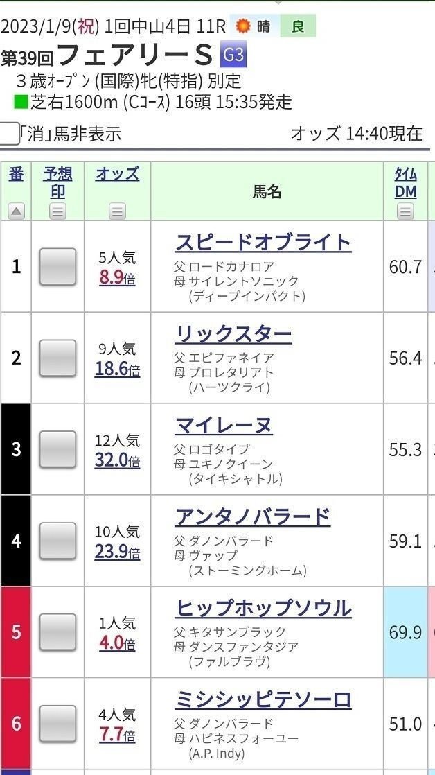【例3】2023年1月9日 中山11R(フェアリーステークス)
