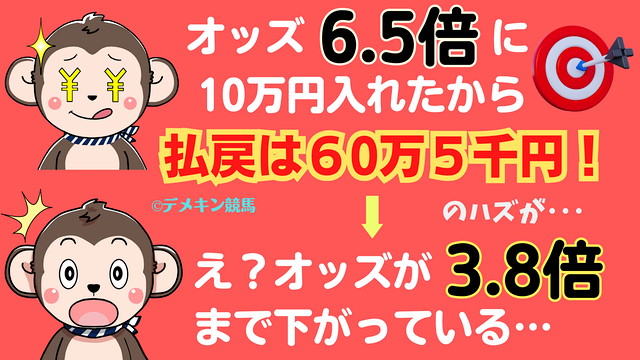気合いを入れて、1万円の単勝勝負を行い、5.0倍のオッズで馬券が当たったと思ったものの、払戻金の発表があった時には420円で、オッズは4.2倍に下がっていた…なんてことは、馬券あるあるです。