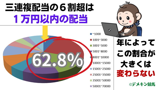 多少、数字の前後はあるかもしれませんが、●番人気が1着になる確率や、三連複の配当オッズで一番割合の多いゾーンは、毎年ある程度決まっているのです。