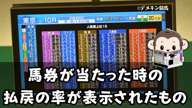レース前は、馬券の券種ごとにすべての組み合わせで、馬券が当たった時のオッズが公表されます。