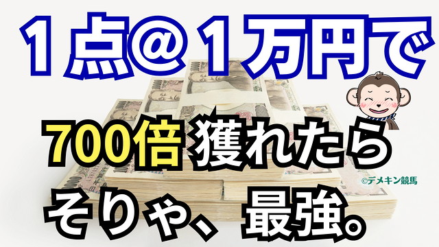 1万円が700万円になるわけですから、常に1万円の1点勝負なら、あと、699回連続で外れてもプラスなわけです。